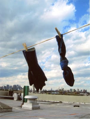 a big hello to guest blogger guadalupe rosales. throughout this week guadalupe will explore the various ways that artists employ textiles as foundation for work in other media. as she explains: "in collecting this group together, i looked for traces. i considered the qualities textiles have and therefore the ways that they could influence another medium and also the forms textiles take to presence those representations as well. how does a flowing limp thread translate into a hardened photograph, a gesture in a video or jeans painted on a naked body?" more about guadalupe here and here.