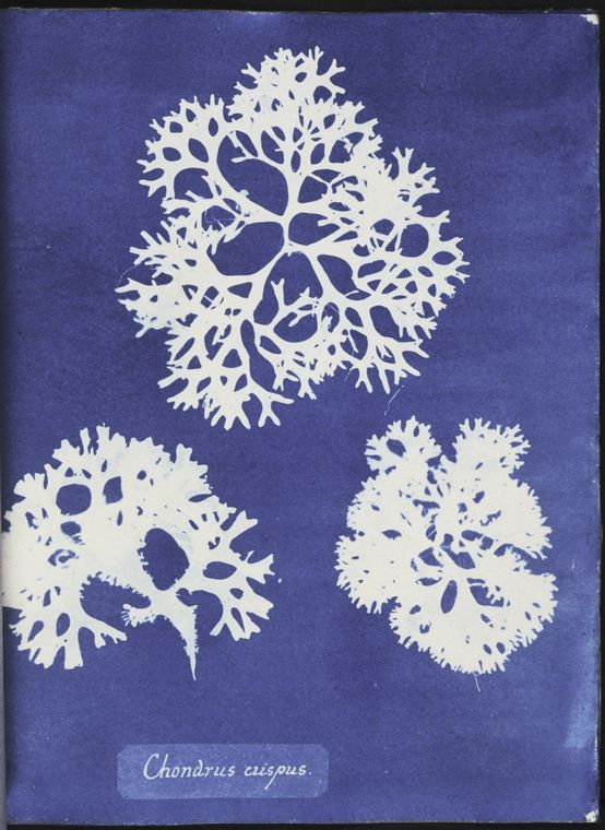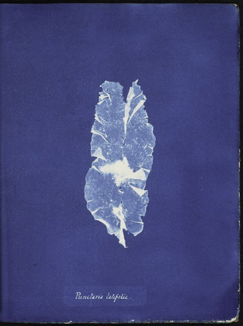 Anna Atkins (1799 - 1871) was an English botanist and photographer. Atkins father was a close friend of Sir John Herschel who invented the Cyanotype process in 1842. Atkins applied this technique in her that self published in its first installment in 1843, which makes it the first book illustrated with photographic images. "Photographs of British Algae: Cyanotype Impressions" consisting of photograms of algae that were contact printed "by placing the unmounted dried-algae original directly on the cyanotype paper". I have seen the book in real on display at the Metropolitan Museum of Arts, New York and almost could not get myself move away from the glass vitrine in which is was placed (last picture).